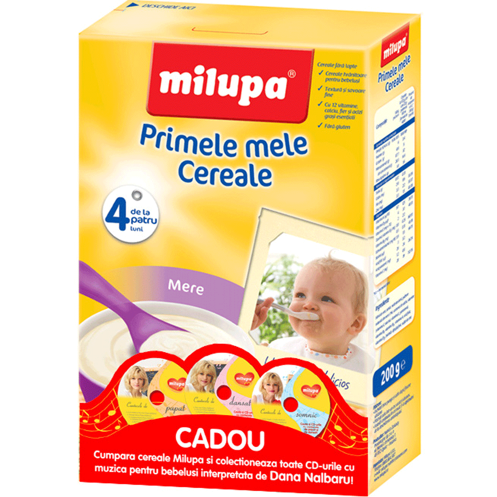 La orice pachet de Milupa Milumil Nutritie Echilibrata sau cereale Milupa achizitionat vei primi un cadou special pentru micutul tau: unul dintre CD-urile cu cantecele pentru copii.