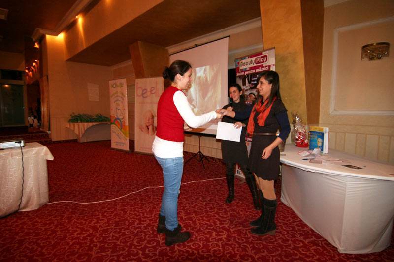 Victoria, managerul Salonului Beauty Play, impreuna cu Minodora Igescu, PR manager, le-au povestit parintilor cum a aparut idee acestui salon si prin ce se diferentiaza – este vorba de locul de joaca, special gandit pentru ca cei mici sa nu se plictiseasca in timp ce mamele lor devin si mai frumoase.