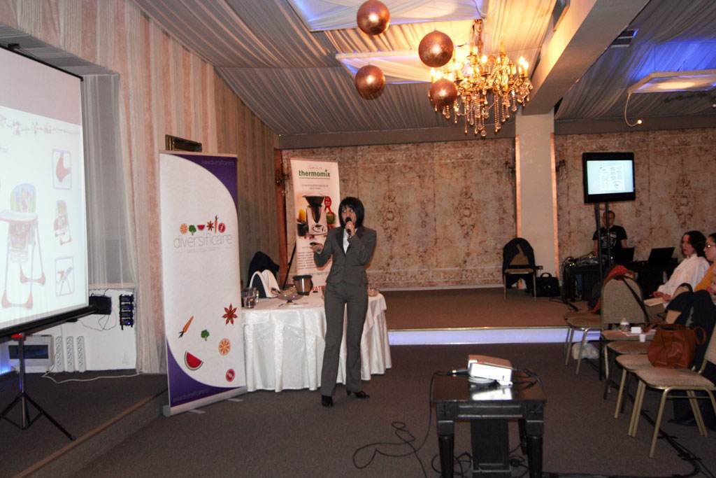 Eugenia Dobrescu, fondatoarea site-ului www.diversificare.ro le-a retinut atentia parintilor cu cateva recomandari despre: momentul cand se incepe diversificarea si despre riscurile care pot aparea atunci cand diversificarea se incepe prea devreme. Pentru a exemplifica trecerea de la pasat la mancare solida, Eugenia a preparat chiar in fata parintilor un piure de broccoli cu cartofi.