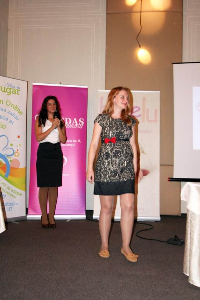 Chic Mama a demonstrat ca gravidutele pot imbraca tinute vesele si colorate, vechiul sarafan ori salopeta cu care am fost obisnuiti putand a fi inlocuite cu o vestimentatie adaptata perioadei de sarcina. O mica prezentare de moda, realizata cu trei gravidute prezente in sala, a starnit sute de aplauze din partea celor prezenti.