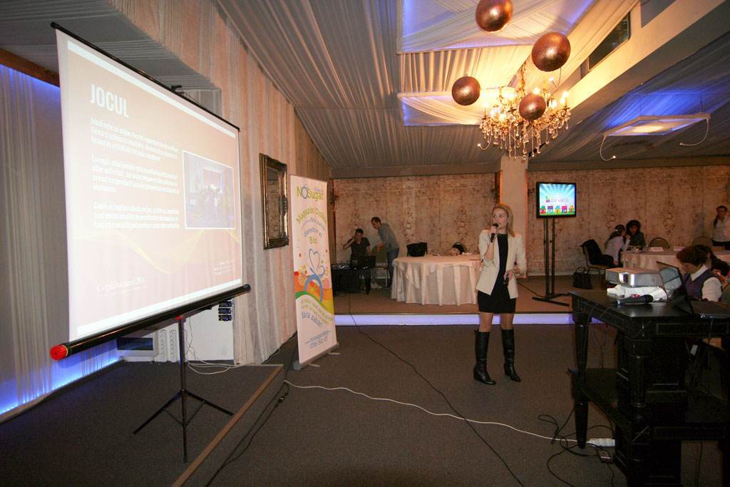 Prezentarea locului de joaca „Copiii jucausi” a fost ultima expunere a serii. Acest loc de joaca a fost gandit si construit corect si inovativ, examinand importanta jocului in dezvoltarea copilului, influentele schimbarilor culturale asupra jocului si influentele varstei. „Copiii jucausi” este un loc de joaca de ultima generatie, sigur, care stimuleaza creativitatea si imaginatia copiilor oferind totodata posibilitatea organizarii de petreceri pentru cei mici.