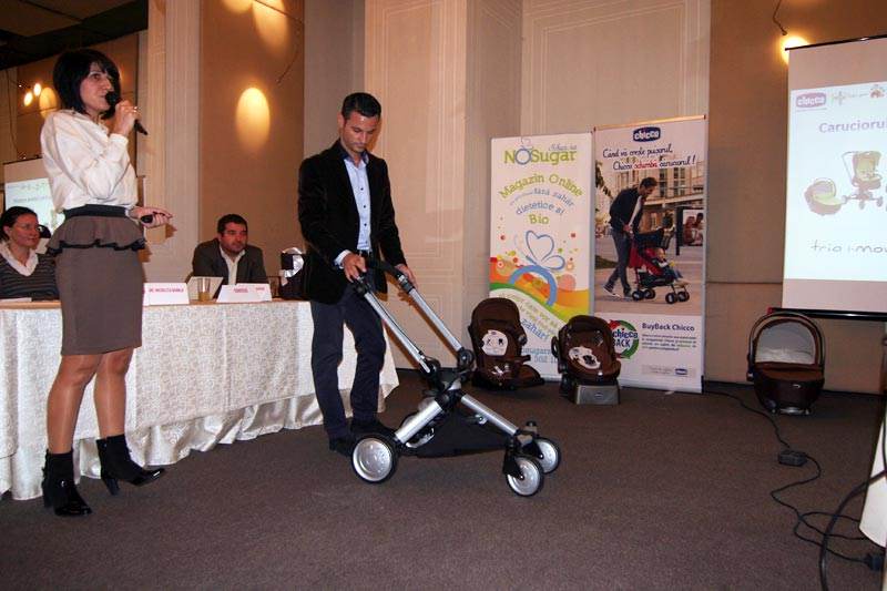 Cristina Manescu, specialist marketing Chicco, le-a vorbit parintilor despre masurile de siguranta ce se impun atunci cand plimbam copilul cu caruciorul. De asemenea un reprezentant Chicco a facut o demonstratie despre facilitatile extraordinare ale celui mai modern carucior Chicco.