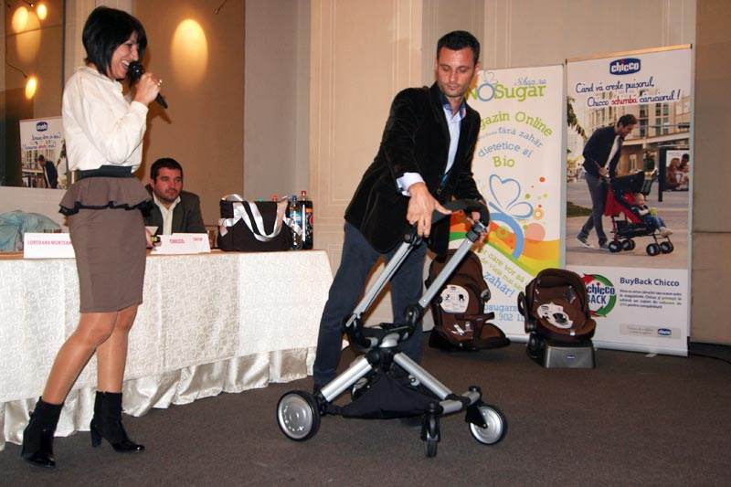 Cristina Manescu, specialist marketing Chicco, le-a vorbit parintilor despre masurile de siguranta ce se impun atunci cand plimbam copilul cu caruciorul. De asemenea un reprezentant Chicco a facut o demonstratie despre facilitatile extraordinare ale celui mai modern carucior Chicco.